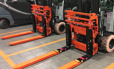 調(diào)距叉廣泛應用于第三方物流。裝卸時搬運各種托盤、盒子、籠子和空運集裝箱,負載貨物的尺寸變化較大。叉車租賃車隊必須全天候進行多種工況的應用。